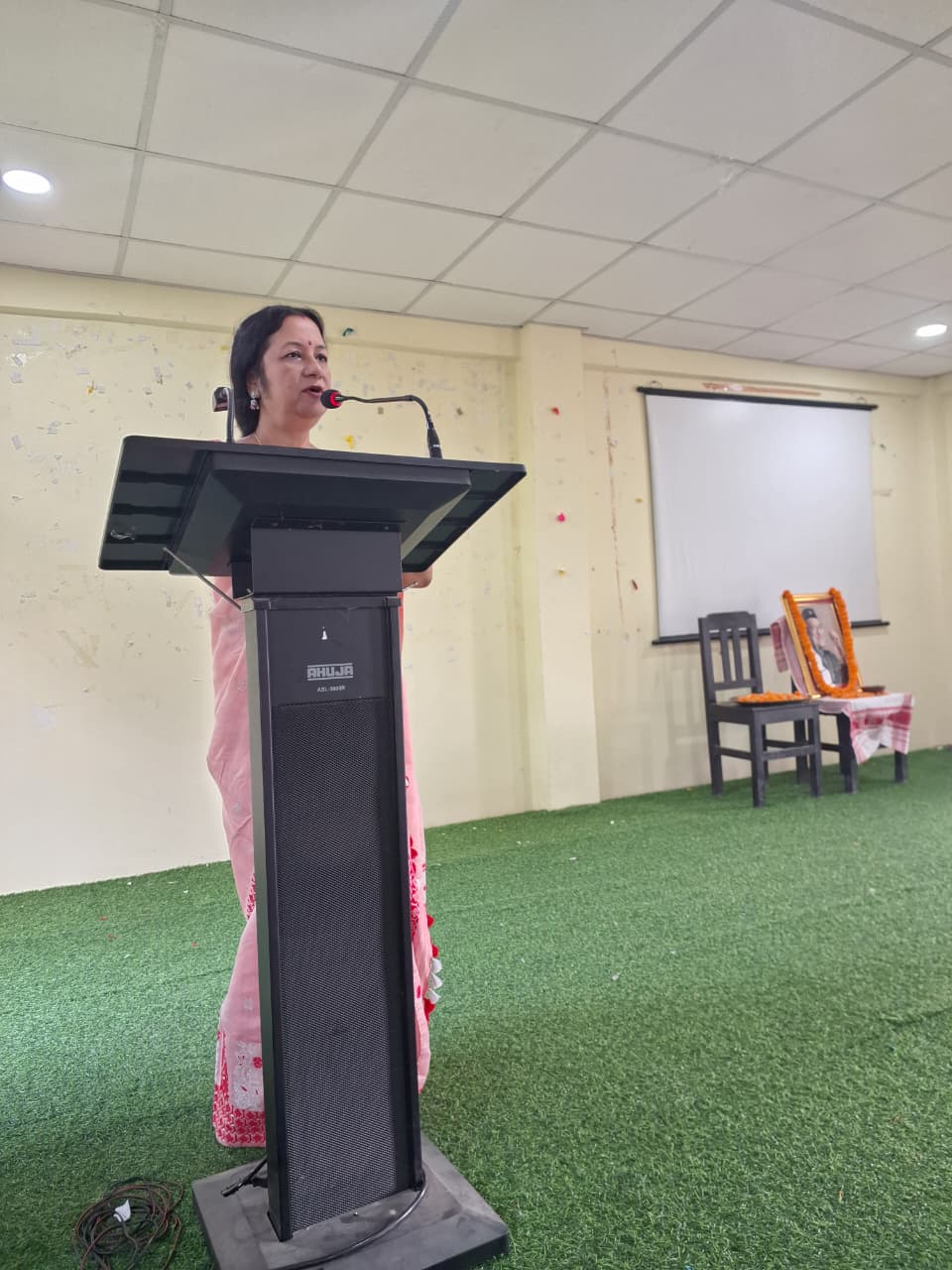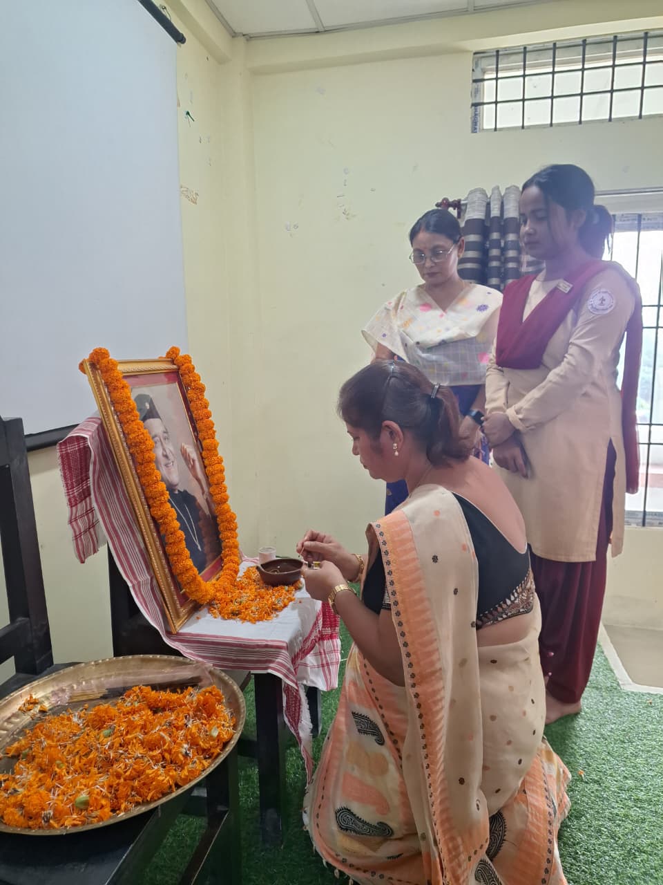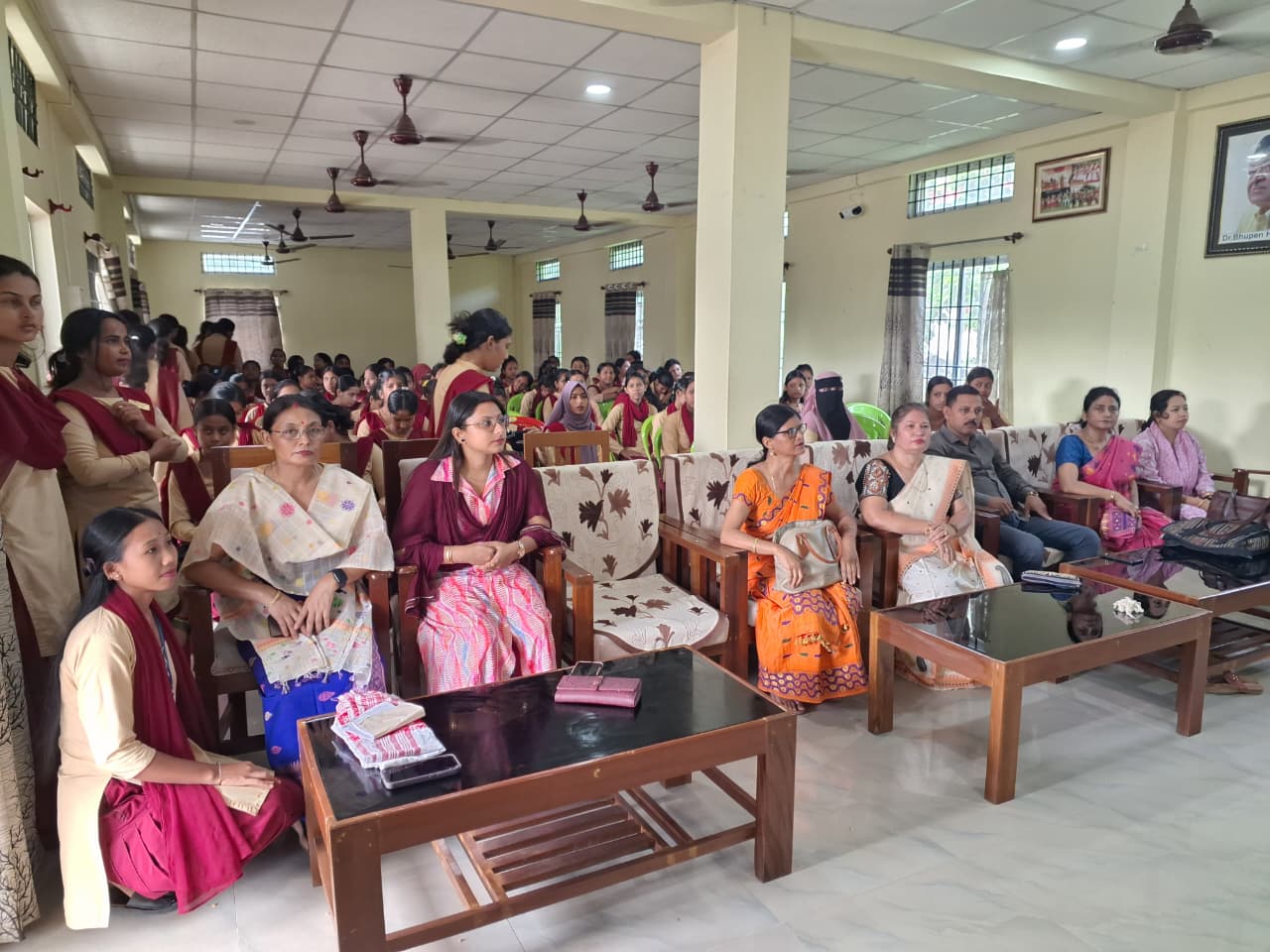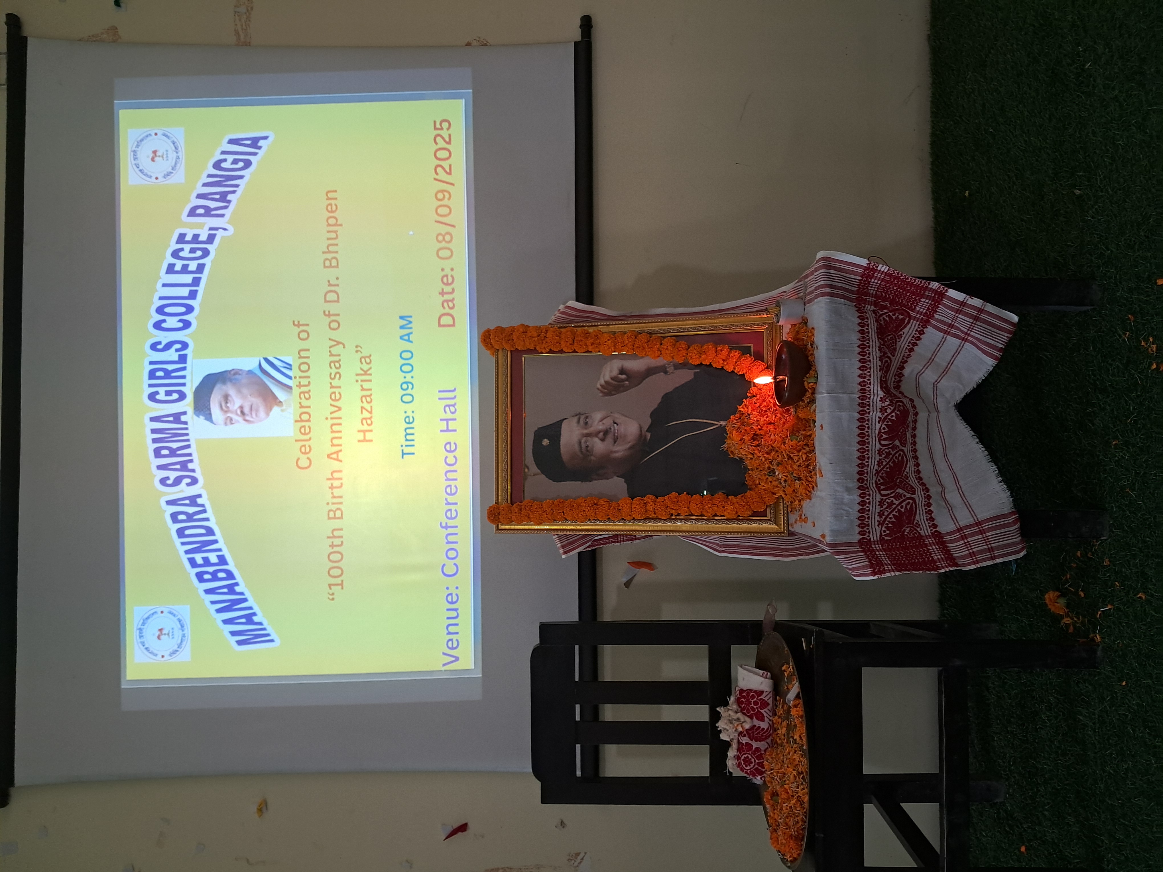 Synchronizing with the birth centenary celebration of Dr. Bhupen Hazarika “Youth Parliament Meet” is held today on dated 22/10/25 under the initiative of Kamrup Zila Sahitya Sabha in association with Rondia (Satdal) Sahitya Sabha, hosted by M.S. Girls’ College, Rangia. The programme is starts with flower tribute to Dr. Bhupen Hazarika and Assam Icon Zubeen Garg. The Programme is chaired by some of the dignitaries in the programme are: 1. Mrs. Prasanna Das Baishya, Principal I/C, M.S. Girls’ College, Rangia 2. Ramesh Chandra Medhi, Vice President, Kamrup Zila Sahitya Sabha 3. Rajani Haloi, Secretary, Kamrup Zila Sahitya Sabha 4. Dilip Thakuria, Treasurer 5. Dr. Susanta Kumar Kashab, Associate Professor, Barbhag College They are felicated with an Assamese handmade Gamosa.