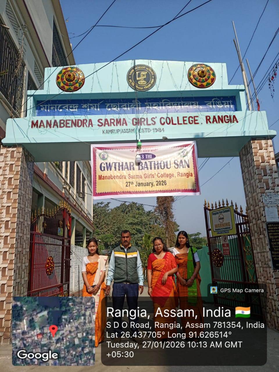 The puja was celebrated with flying colours in M.S. Girls’ College Rangia. The celebration committee was headed by P.D. Baishya as President, Manu Basumatary as Working President, Meghali Baro as Secretary, Amisha Swargiary and Mohini Narzary as Assistant Secretary. There were other allied committees. As per schedule the puja started at 08:30 AM. Bimal Narzary was the Asari (priest) and he was assisted by Atul Khaklari. The puja was coming to an end – 01:30 pm and after 02 PM the lunch programme started. The whole programme come to an end at 03:30pm. Some of the important snapshots are uploaded. The Puja was celebrated with great enthusiasm and splendour at M.S. Girls’ College, Rangia. The Celebration Committee was headed by Mrs. P. D. Baishya as President, Mrs. Manu Basumatary as Working President, Ms. Meghali Baro as Secretary, and Ms. Amisha Swargiary and Ms. Mohini Narzary as Assistant Secretaries. Several other allied committees also extended their cooperation for the successful conduct of the programme. As per the schedule, the Puja commenced at 8:30 AM. Shri Bimal Narzary performed the rituals as the Asari (priest), assisted by Shri Atul Khaklari. The Puja concluded at 1:30 PM, followed by the lunch programme which began after 2:00 PM. The entire programme came to an end at 3:30 PM. Some of the important snapshots of the event have been uploaded.
