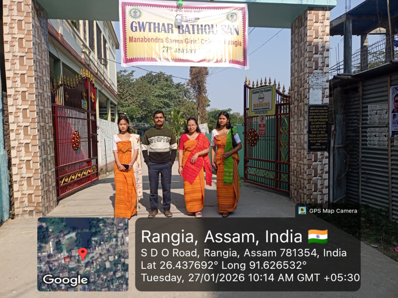 The puja was celebrated with flying colours in M.S. Girls’ College Rangia. The celebration committee was headed by P.D. Baishya as President, Manu Basumatary as Working President, Meghali Baro as Secretary, Amisha Swargiary and Mohini Narzary as Assistant Secretary. There were other allied committees. As per schedule the puja started at 08:30 AM. Bimal Narzary was the Asari (priest) and he was assisted by Atul Khaklari. The puja was coming to an end – 01:30 pm and after 02 PM the lunch programme started. The whole programme come to an end at 03:30pm. Some of the important snapshots are uploaded. The Puja was celebrated with great enthusiasm and splendour at M.S. Girls’ College, Rangia. The Celebration Committee was headed by Mrs. P. D. Baishya as President, Mrs. Manu Basumatary as Working President, Ms. Meghali Baro as Secretary, and Ms. Amisha Swargiary and Ms. Mohini Narzary as Assistant Secretaries. Several other allied committees also extended their cooperation for the successful conduct of the programme. As per the schedule, the Puja commenced at 8:30 AM. Shri Bimal Narzary performed the rituals as the Asari (priest), assisted by Shri Atul Khaklari. The Puja concluded at 1:30 PM, followed by the lunch programme which began after 2:00 PM. The entire programme came to an end at 3:30 PM. Some of the important snapshots of the event have been uploaded.